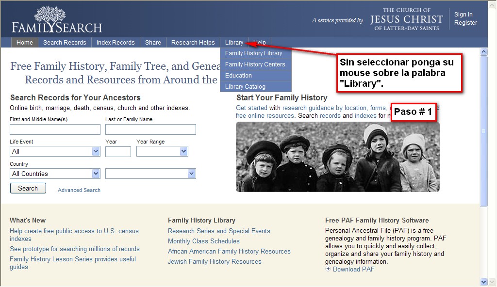 Log in to post comments <Return to Acidfree Albums> <Return to FamilySearch Fotos>Como ver el contenido de la parroquia con un numero de Film 1 <Next> Image Paso # 1, Step 1